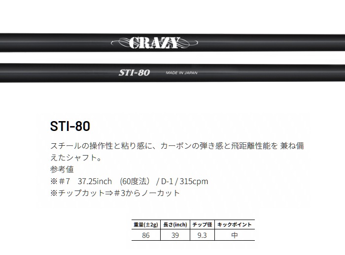トップ > ブランドで選ぶ > クレイジー > 【当店は安心の正規販売店です】クレイジー(アイアン用シャフト)CRAZY STI-80 IRON【リシャフト工賃込】