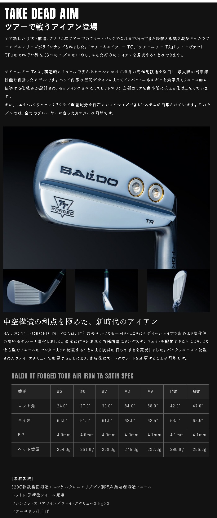 トップ > ゴルフヘッド > 【当店は安心の正規販売店です】地クラブ系ヘッド BALDO TT FORGED TOUR AIR IRON TA SATIN ヘッド バルド