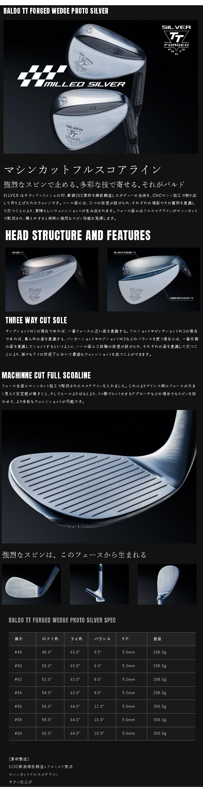 トップ > ゴルフヘッド > 【当店は安心の正規販売店です】地クラブ系ヘッド BALDO TT FORGED WEDGE PROTO SILVER HEAD