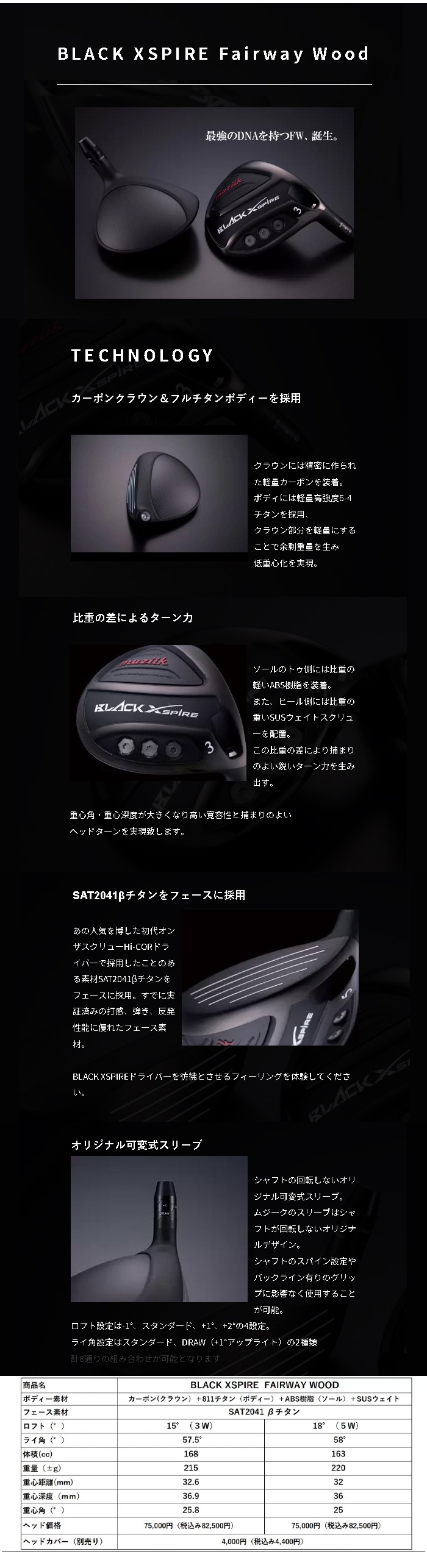 トップ > ゴルフヘッド > ゴルフヘッド_ブランド別 > 地クラブ系ヘッド Muziik BLACK XSPIRE Fairway Wood HEAD ムジーク