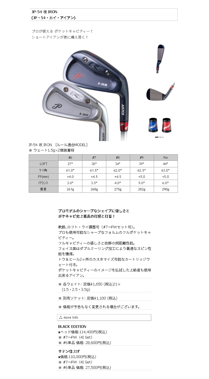 トップ > ゴルフヘッド > ゴルフヘッド_ブランド別 > 【当店は安心の正規販売店です】地クラブ系ヘッド JUSTICK JP-54 改 IRONJP・54・カイ・アイアン #7-#PW (ヘッド単体での販売はできません) ジャスティック