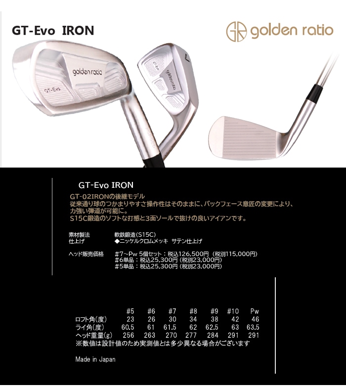 トップ > ゴルフヘッド > 【当店は安心の正規販売店です】地クラブ系ヘッド goldenratio GT EVO IRON アイアン HEAD #7-#PW ゴールデンレイシオ
