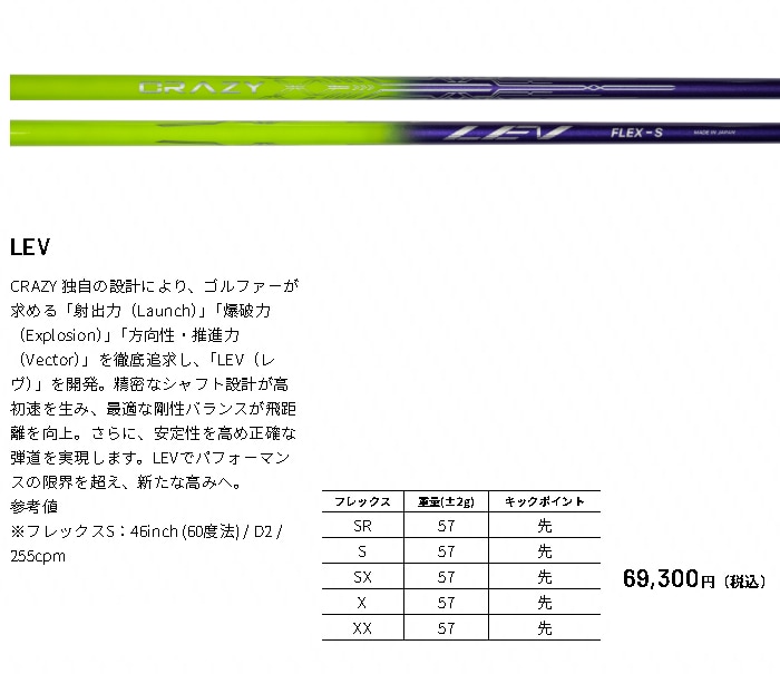 トップ > ブランドで選ぶ > クレイジー > 【当店は安心の正規販売店です】クレイジー(ウッド用シャフト)CRAZY LEV ・クレイジー LEV ・スリーブ付シャフト対応【リシャフト工賃込】